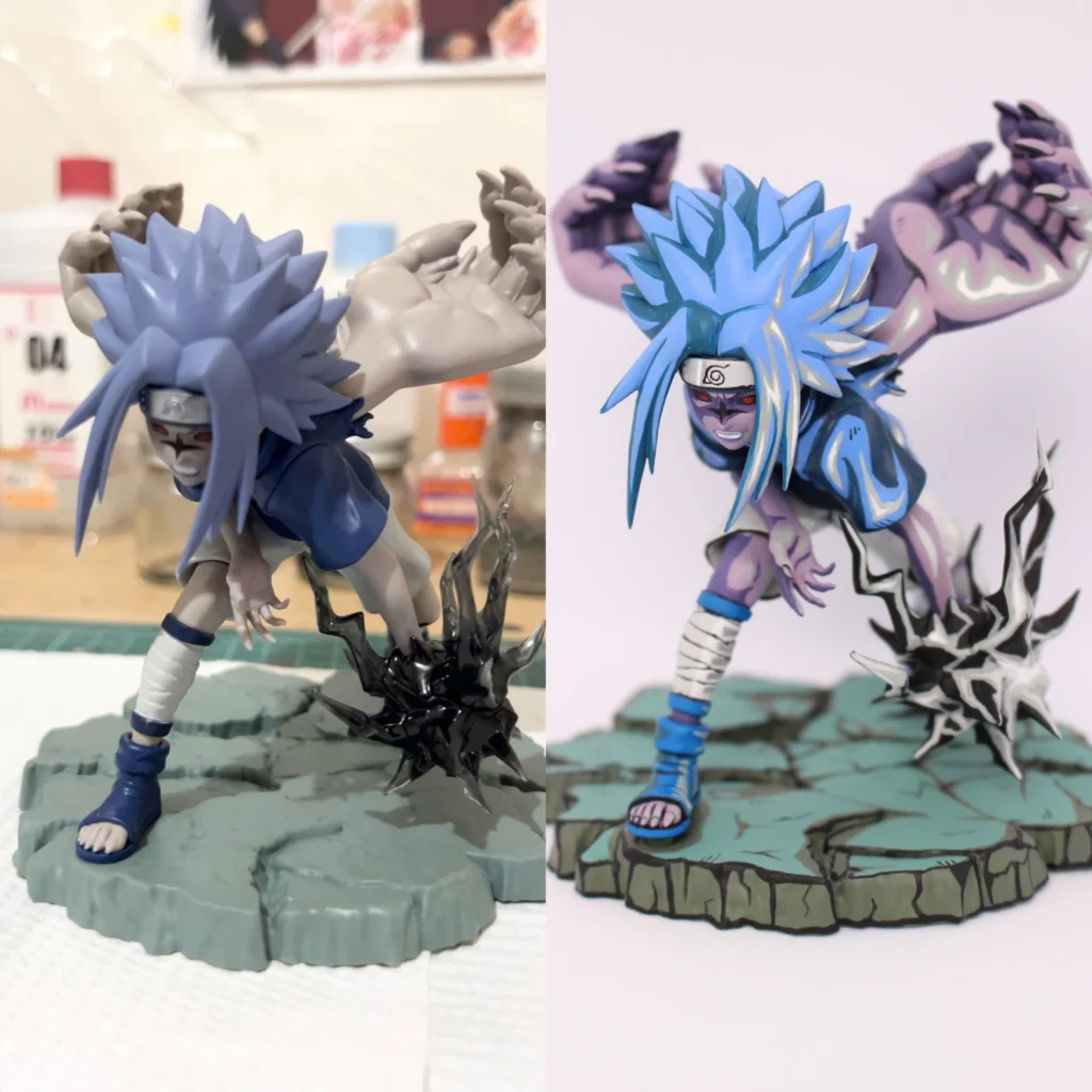 今回のリペイントで、「闇と葛藤を抱えるキャラ」を全面に出せるように努力しました。次は呪印状態以外のサスケや、他キャラにも挑戦してみたいですね。
